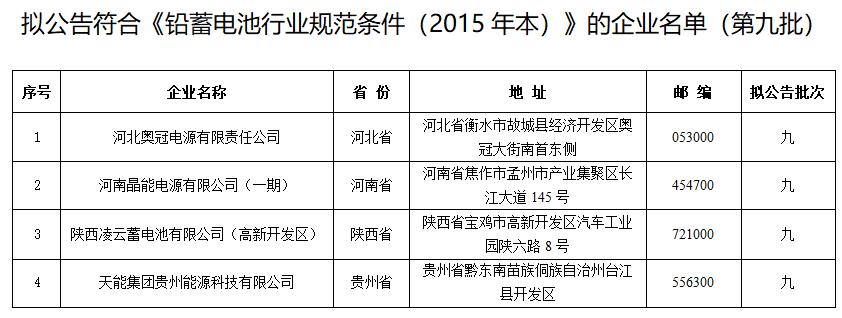 1.擬公告符合《鉛蓄電池行業規范條件(2015年本)》的企業名單(第九批)