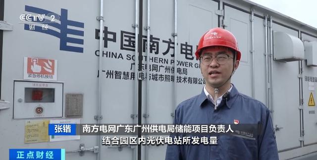 南方電網廣東廣州供電局儲能項目負責人 張鍇:結合園區內光伏電站所發電量,在用電低谷時將電能儲存在電池中,用電高峰時釋放電能,實現“每日兩充兩放”。同時還可以將園區屋頂分布式光伏所發電能,合理調配至新能源汽車產線中。
