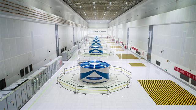 走進文登抽水蓄能電站地下廠房,潔白的大廳內6臺機組一字排開,機罩側面描繪著藍色波濤圖形,象征著文登抽蓄電站這座年輕的電站在新征程上揚帆起航。2023年9月19日,國網新源山東文登抽水蓄能電站最后一臺機組——6號機組正式投入商業運營,標志著山東省內裝機規模最大、膠東地區首座抽水蓄能電站全面投產發電。