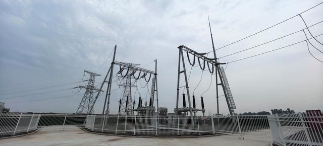 潞城仁和儲能電站是一個電化學儲能電站,與埋在地下的飛輪裝置不同,電化學儲能的裝置都在地面以上,園區主要分為兩個部分:升壓站和儲能區。升壓站內的幾個立柱支撐起了進出能量的電纜,像一座橋梁連接起外部電力系統與電站儲能區之間的能量交換。