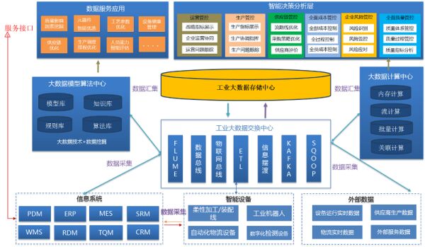 傳統的數據中心在應對海量數據存儲、非結構化數據處理、大數據挖掘分析等方面存在不足,有必要構建基于工業大數據的新一代數據中心,滿足企業對工業大數據集中管控、處理、分析及利用,為企業構建在線感知、實時分析、智能決策、精準執行的能力,支撐企業從生產型制造向服務型制造轉型。