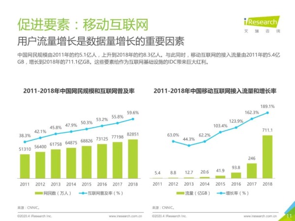 移動(dòng)互聯(lián)網(wǎng)和大數(shù)據(jù)是過(guò)去數(shù)據(jù)中心增長(zhǎng)的主要?jiǎng)右颍哼^(guò)去5年,需求端,網(wǎng)民數(shù)量和移動(dòng)流量增長(zhǎng)迅速;供給端,大數(shù)據(jù)和人工智能對(duì)存儲(chǔ)和計(jì)算提出更高需求。因素疊加,導(dǎo)致數(shù)據(jù)中心增長(zhǎng)迅速。