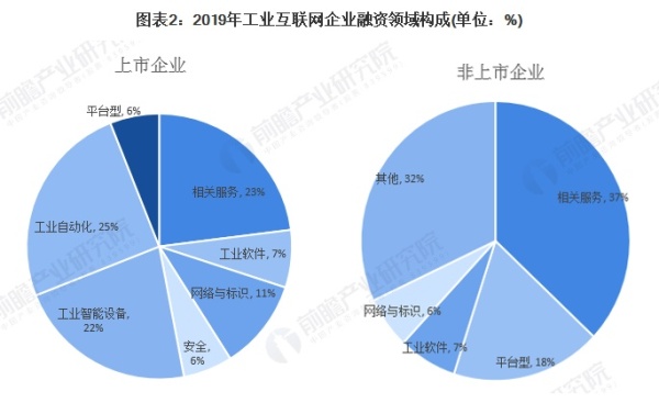 非上市企業(yè)方面,2019年提供相關(guān)服務(wù)的創(chuàng)業(yè)企業(yè)最多,占比達(dá)37%,平臺(tái)型的企業(yè)占18%,工業(yè)軟件和網(wǎng)絡(luò)與標(biāo)識(shí)的企業(yè)最少,分別占總數(shù)的7%和6%。