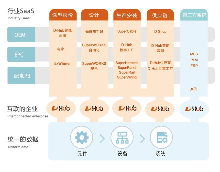 令永卓深諳數據的價值。他帶著創(chuàng)業(yè)家的韌勁,敏銳洞察電力裝備制造行業(yè)的發(fā)展趨勢,本著從數據中學習、改變電力電氣行業(yè)的初衷,從數據中提取價值服務用戶的理念,提出用數據賦能行業(yè),致力于打通數據流。談起如今專注挖掘數據的價值,令永卓表示,這一切源于他求學時代的經歷。大學期間,在清華工程力學系求學的令永卓建立了面向問題建立數學模型,把復雜的非線性問題抽象為簡單的線性問題進行求解的思維方式。在后來的工作中,他發(fā)現設備的設計、生產制造以及運維之間并非真正有效連接,存在嚴重的數據偏差甚至脫節(jié)的現象,為達到設計、制造以及供應鏈的協同,他提出在電力裝備制造行業(yè)形成貫穿橫向、縱向、端到端的數據流通的舉措。之后,他將創(chuàng)想落地,從電氣軟件的數據建模開始,制定標準,進行3D仿真,通過機器智能設計、智能識圖、智能報價,進而幫助產品實現協同制造。令永卓透露:“當前基于D-Hub制造的縱向數據流與D-Hub供應鏈的橫向數據流已經被成功打通,下一步我們將重點打通集產品研發(fā)、系統設計、安裝施工、運營維護的D-Hub運維的端到端數據流。”