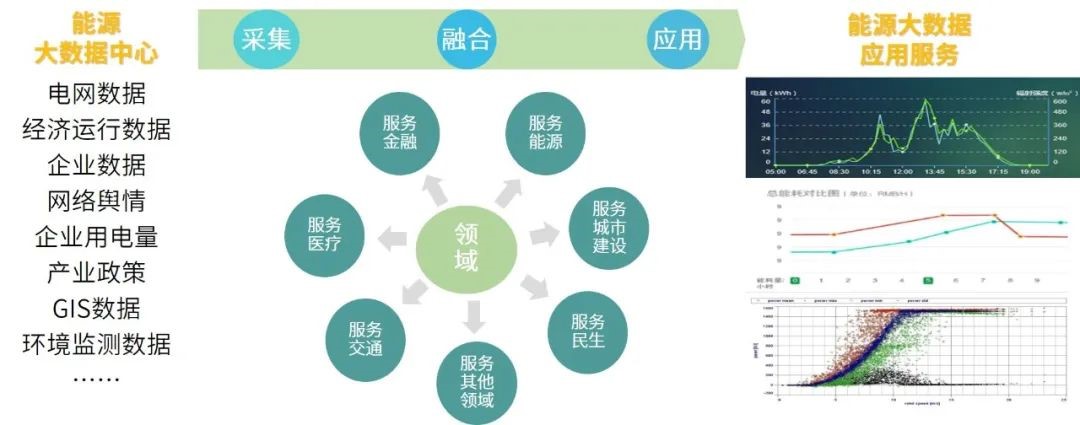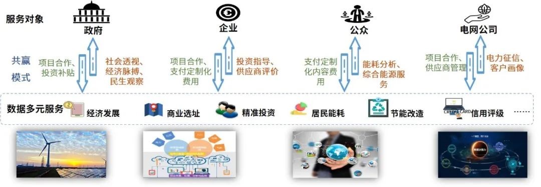 能源大數據中心聚焦政府部門、行業機構、生產企業、電力客戶各方數據應用訴求,通過將電力數據與政府、企業、能源上下游數據匯聚整合、共享交換和挖掘分析,促進政府決策科學化、社會治理精準化、公共服務高效化,賦能實體經濟,推動產業轉型,助力數字化建設,更好地服務經濟社會發展和人民生活改善。