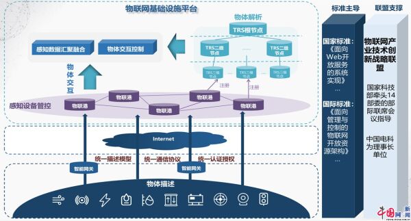 全新的“中國電科開放物聯(lián)網(wǎng)通用體系”(簡稱“電科開物”),可以有效提升全域物聯(lián)感知接入能力,圍繞終端設(shè)備統(tǒng)一接入和全生命周期管理,標(biāo)準(zhǔn)化的物聯(lián)數(shù)據(jù)采集與發(fā)布,以及逐層輻射、分級管理的物聯(lián)網(wǎng)物體解析節(jié)點建設(shè)模式,為“新基建”打牢共用支撐,為“萬物數(shù)聯(lián)”提供物聯(lián)數(shù)據(jù)支撐。以統(tǒng)一的話語體系,解決物體是什么、在哪里、怎么用以及安全等關(guān)鍵核心問題。