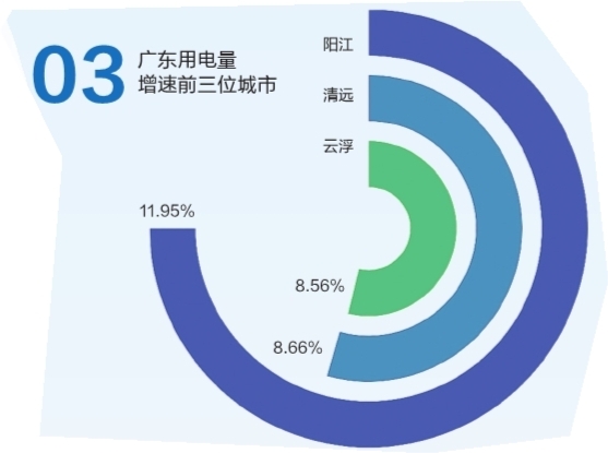 全國范圍看,廣東省累計用電量位居全國第一,增速高于全國平均水平。在全國排名前四位的用電大省中,廣東省的用電量和增速均分別高于江蘇、山東、浙江三省。
