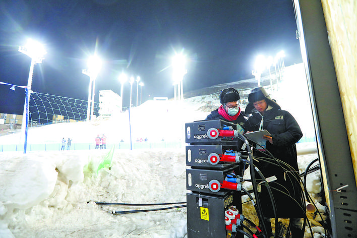 盡管有著嚴(yán)格的流程,供電保障團(tuán)隊還要不時應(yīng)對各種突發(fā)情況。雪上競賽的一大特點是變化多——受氣溫、風(fēng)力等因素影響,測試活動時間隨時可能改變。原定于19時舉行的雪上技巧測試活動最終因大風(fēng)推遲,提前兩小時到位的值守人員原地等待,在活動結(jié)束后1小時確認(rèn)保電任務(wù)完成,再從賽道撤離。