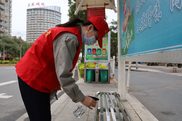 活動中,志愿者兩兩一組,組成三支小隊。三支隊伍分工有序,分別開展了協助環衛女工打掃街道、清掃公共區域地面及設施、消毒公交車站站牌和候車位等工作?;顒映掷m1個小時,志愿者身體力行地參與到公共衛生環境整治工作當中,切身體會到環衛工人的崗位艱辛,并表示會進一步提升環保意識,積極向周邊家人同事傳導維護環境知識和理念,切實營造共創美好家園的氛圍。