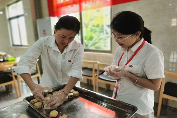 活動當(dāng)天,該公司工會工作人員早早準(zhǔn)備了制作月餅?zāi)>呒梆W料等,大家圍在一起,忙的不亦樂乎,稱重量、分餡料、壓模型......雖然大家都是“新手”但在有經(jīng)驗的“師傅”指導(dǎo)下,每一步都做得格外用心,大家邊做月餅,邊相互探討著做法。