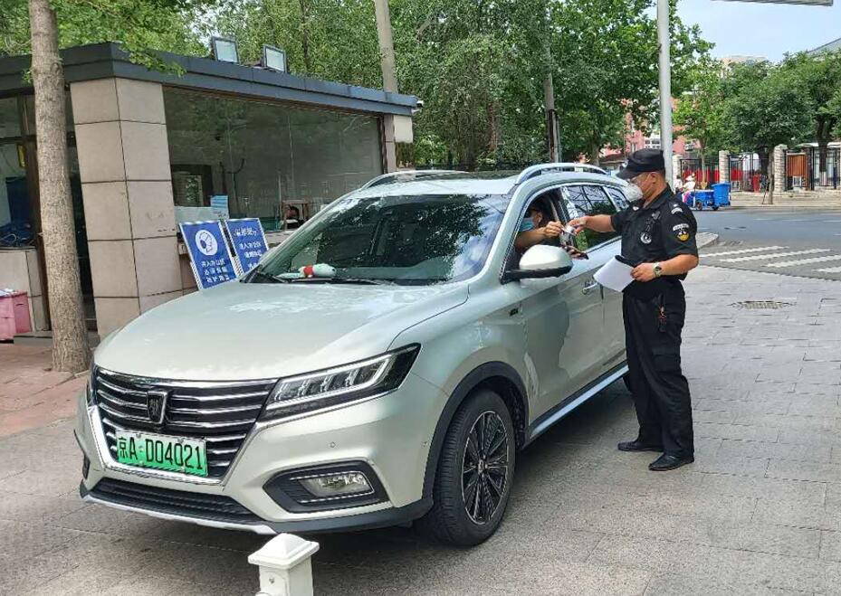 對進入單位的人員及車輛進行測溫及檢查健康二維碼 胡玉新攝