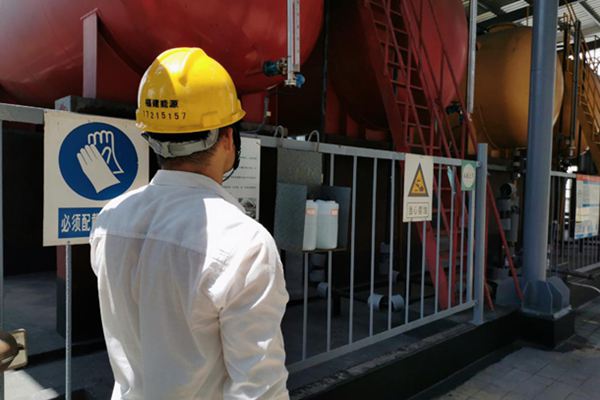 “報(bào)告主值,化水區(qū)域設(shè)備運(yùn)行正常,1號酸罐液位1.6米,2號酸罐液位…… ”化學(xué)巡檢人員正拿著對講機(jī)匯報(bào)巡檢情況,我們可以從鏡頭上看到,高溫的洗禮下整件衣服都已經(jīng)貼著后背,滿臉大汗就不在話下。