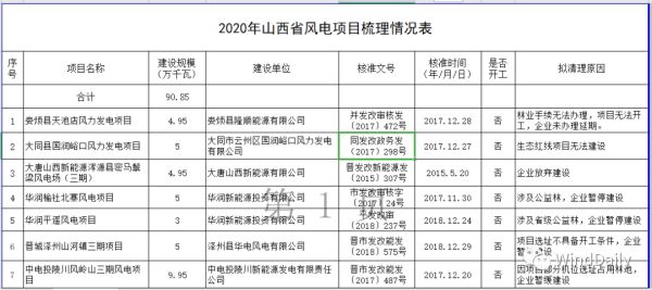 日前,山西省能源局近日公布了2020年風電項目梳理情況,擬清理15個風電項目總計900.5MW。以下為具體通知及表單: