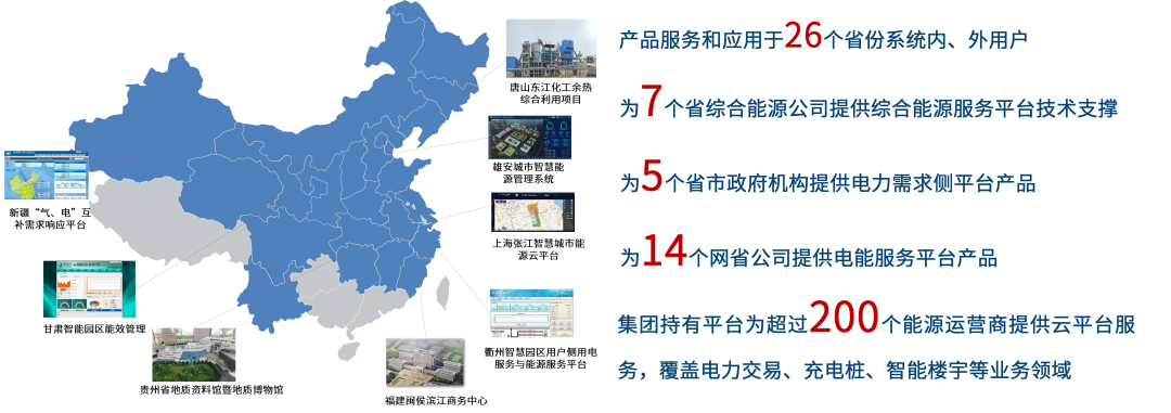 目前,相關產品及解決方案已在26個省市全面開花,獲得4項省部級獎勵,成功打造了雄安新區市民服務中心智慧能源管控系統、上海張江科學城智慧城市能源云平臺、天津城市能源互聯網平臺、國家電網公司南北客服中心綜合能源工程、青島智能家居產業園綜合能源服務、新疆“氣、電”互補需求響應平臺、云南能投充電服務平臺等多項優質項目。