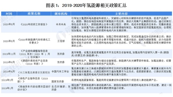 我國從2006年就將氫能及燃料電池寫入《國家中長期科學和技術發展規劃綱要(2006-2020年)》的發展計劃中,此后,一系列的政策、規劃及補貼發布,更加顯示出了國家對氫能及燃料電池的重視,在2020年5月的政府工作報告中也重點提及了氫燃料電池的投入研發。