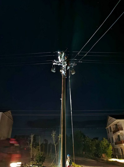 事故發生后,龔坊供電所所長楊程立即組織人員第一時間趕赴現場,經現場查勘后制定搶修方案,在確保人身安全的前提下,連夜開展搶修工作。在搶修現場,做好安全措施后,樂安縣供電公司龔坊供電所10余名員工協同合作,對損毀的斷桿、導線、橫擔進行清理,重新立桿、安裝新的拉線、T接導線……搶修工作有條不紊的進行。