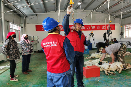 中國電力網訊 炎炎夏日,祁連山下的肅南草原迎來了最美的時節,廣大牧民群眾們也迎來了一年一度的羊毛豐收季。肅南裕固族自治縣是甘肅省高山細毛羊的主要產區、國家絨毛體系建設重點縣和甘肅省重要的畜牧業商品基地,如今細毛羊已經成為該縣牧民群眾增收的支柱產業。7月1日在黨的99周歲生日這一天,為有力保障牧民群眾“剪毛季”供電安全,國網張掖肅南縣供電公司組織共產黨員服務隊深入肅南縣大河鄉紅灣村五個佳羊毛專業合作社,開展了“五進五送”志愿服務活動,“紅馬甲”在牧區上用自己的實際行動來獻禮“七一”。