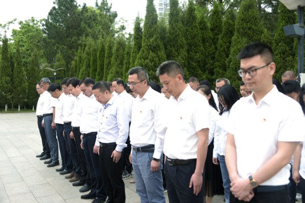 在莊嚴的革命烈士紀念碑前,全體人員隊列整齊,懷著對革命先烈的崇敬之情,向烈士們致敬、默哀、敬獻花籃,追憶革命先烈的不朽功勛。