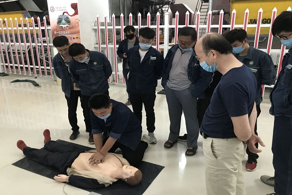 安全員李燾首先帶領(lǐng)大家觀看視頻教程,把心肺復(fù)蘇的整個(gè)過程,每一個(gè)細(xì)節(jié)都進(jìn)行了認(rèn)真的學(xué)習(xí),隨后在模擬人上進(jìn)行實(shí)際操作。安全員一邊做示范一邊講解如何掌握基本心肺復(fù)蘇的操作要點(diǎn)及注意事項(xiàng),并通過對(duì)“模擬人”實(shí)施心臟復(fù)蘇搶救操作進(jìn)行了演示,包括判斷是否喪失意識(shí)、判斷有無自主呼吸、判斷有無脈搏、進(jìn)行胸外心臟按壓、清理口腔異物、開放氣道、人工呼吸等操作要領(lǐng)的示范。