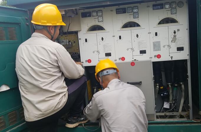 圖為工作人員在10千伏工業(yè)園II回02號環(huán)網(wǎng)柜內安裝二遙設備