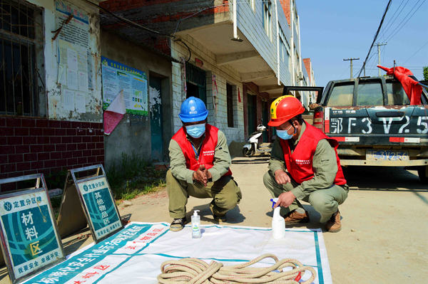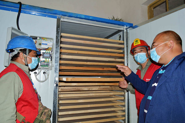 “齊書記,3個接電工作日正趕上五一長假,我們怕廠家調試烘干設備時間緊影響生產,就提前來了。”施工當天,黃永亮一邊和服務隊員做好施工前的防疫消殺工作,一邊向齊志強解釋。