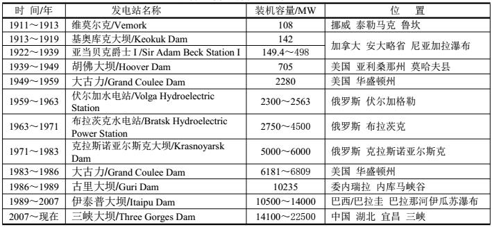 隨著時間的進程,哪種發電站居世界之首。自20世紀初以來,世界上最大的發電站一直是水力發電廠。