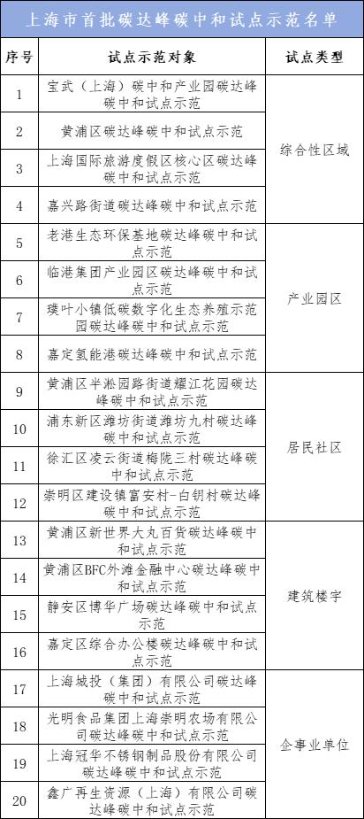 20家!上海首批碳達峰碳中和試點示范名單公布