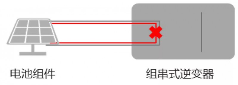 當前的集中式方案一般使用16/24路直流匯流箱將組件功率進行匯集,采用支路熔絲和匯流斷路器進行保護,因光伏組件短路電流僅為額定電流的1.1倍,無法達到熔絲和斷路器的保護電流,因此現有的直流保護器件均無法動作。具體原理如下: