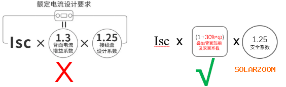 2021年2月,IEC61215/IEC61730:2021已發布,標準中增加了雙面組件的相關定義和描述。該標準推薦按照1.25xIsc-BSI 進行零部件選型,請注意這里需要考慮雙面組件的雙面系數φ(目前,普遍的雙面系數φ約為70%)。根據歷次標準升級慣例,考慮到認證機構及實驗室設備升級、資質認可,2021版標準的正式執行還需數月至數年時間。然而,《無法忽視的真相》一文,生搬硬套錯誤的標準并缺乏深度理解,這是完全不了解產品和標準的表現。