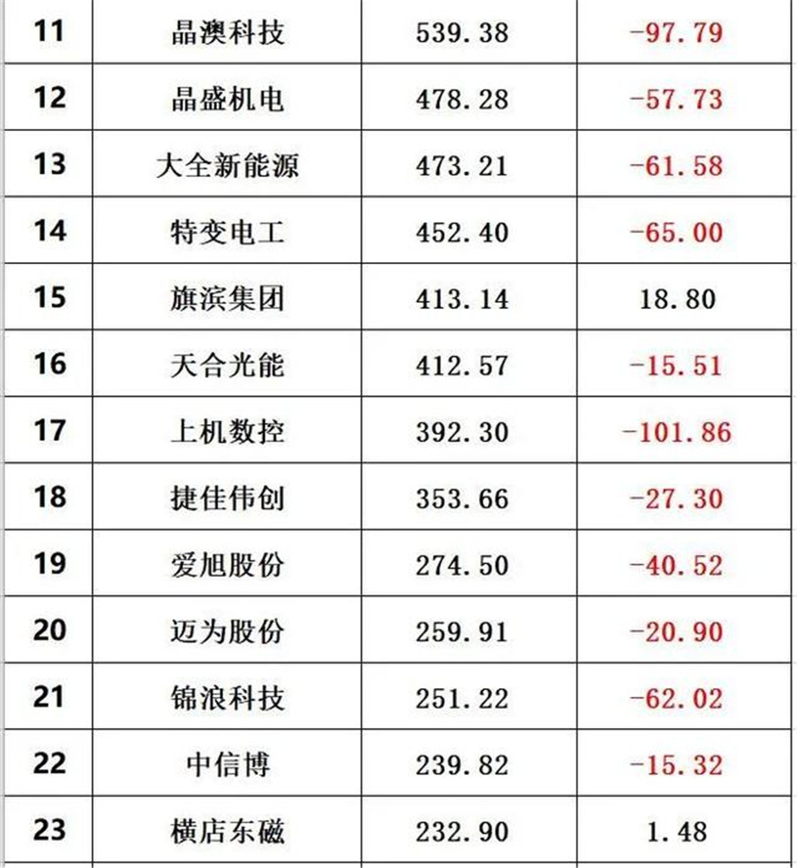 其中隆基股份總市值較春節前下跌678億、通威股份下跌288億、陽光電源跌去462億、信義光能下跌167億、中環股份下跌43億、正泰電器跌去13億、先導智能跌去123億、福斯特跌去111億、福萊特跌去83億、保利協鑫能源跌去171億、晶澳科技跌去97億。