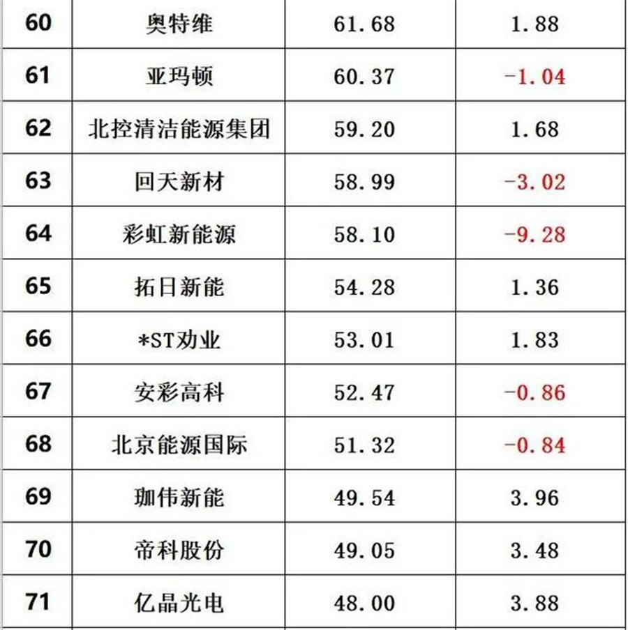 在黑鷹光伏整理出的最新的光伏總市值排行榜上,排在前15的企業,總市值在過去幾個交易日里都出現了下跌