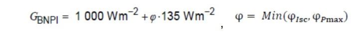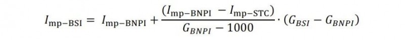 增加雙面組件的熱循環測試注入的電流要求,可根據電流與輻照度的線性關系,按照如下公式計算: