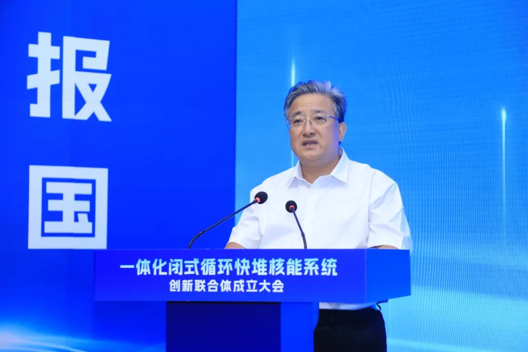 余劍鋒指出,核能“三步走”戰略是引領我國核能發展的國家戰略,一體化快堆創新聯合體成立是推動核能“三步走”戰略加快實施的重要舉措。中核集團將始終秉承“開放、協同、共建、共享”理念,更好發揮企業創新主體作用,有效發揮一體化快堆創新聯合體的協同作用,充分彰顯集中力量辦大事的制度優勢,集聚資源、協同攻關,推動一體化快堆關鍵核心技術攻關和戰略性牽引項目早日實現重大突破,為實現“雙碳”目標,推進中國式現代化和建設核強國、科技強國筑牢戰略支撐。余劍鋒向一體化快堆創新聯合體共建單位提出三點倡議:一是胸懷“國之大者”,服務國家戰略。要聚焦“四個面向”,鍛造國家戰略科技力量,爭做重大科技創新、服務支撐國家戰略的主力軍。二是集中資源力量、突破關鍵技術。優化完善一體化快堆戰略性研發的組織模式和體制機制,加大協同,加快一體化快堆“研發-生產-應用”一體發展,早日實現我國在快堆領域的全面領跑。三是加強組織領導,強化協同協作。要不斷優化完善創新聯合體建設運行機制,集聚創新資源、激發創新活力,創新國資央企推進戰略科技研發新模式,以高水平協同增強服務國家戰略的核心功能。
