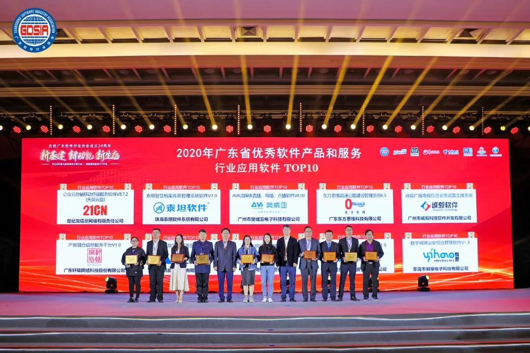 2020年廣東省優秀軟件產品和服務行業應用軟件TOP10