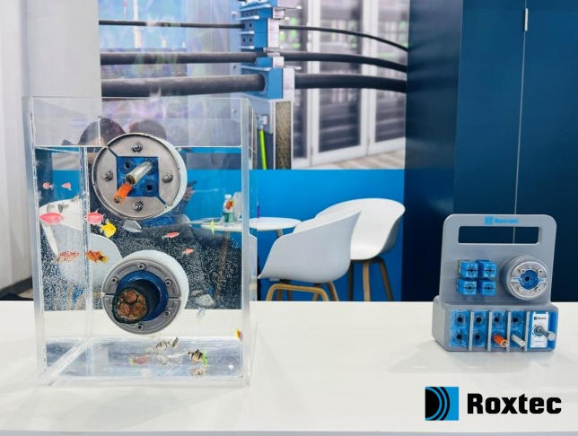 展臺上,Roxtec橢圓形密封解決方案與Roxtec TB壓載水艙解決方案尤為亮眼。Roxtec橢圓形解決方案是大型管道以及多電纜應用場景的理想密封解決方案。通過優化開孔形狀,顯著降低應力集中,使得風機基礎結構可采用更薄的鋼材,從而實現減重與降本,同時有效阻隔海水、鹽霧和潮濕空氣的侵入,在惡劣海洋環境中提供可靠保護;Roxtec TB壓載水艙解決方案適用于長期水下工況,專為單根電纜或金屬管道密封而設計,由Roxtec TB密封件與Roxtec SL TB套筒組成,可實現水密、氣密、防塵、防火、抗振動等安全防護。這些創新解決方案的可靠性和優越性已在多個海上風電項目中經過驗證。