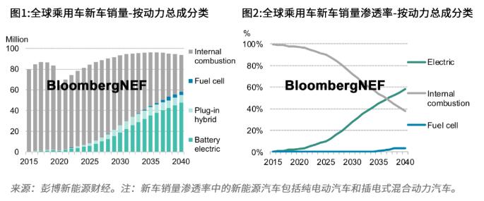 彭博新能源財經最新發布的《新能源汽車市場長期展望》報告指出,到2040年,新能源汽車在全球乘用車銷量的占比預計達58%,在乘用車保有量的占比達31%。除乘用車外,新能源車在公交車保有量的占比將達67%,在兩輪摩托車占比達47%,在輕型專用車占比達24%。