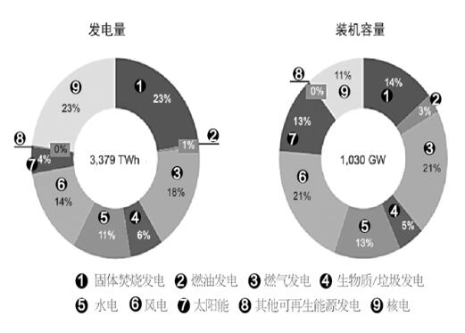 圖2 2020年歐盟發電量和發電裝機容量(預估)