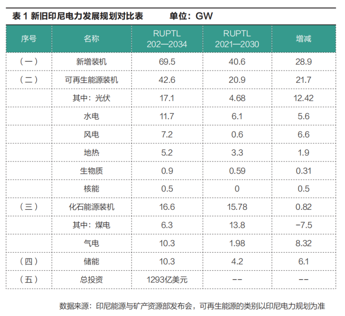 印尼清潔能源轉型受挫但目標未變。2025年5月,印尼國家電力公司(PLN)正式發(fā)布了印尼電力發(fā)展規(guī)劃2025—2034(以下簡稱為《RUPTL2025—2034》)。從這版規(guī)劃中可以看出,印尼政府的清潔能源轉型目標并未改變,可再生能源裝機仍然會得到大力發(fā)展。燃煤發(fā)電機組大幅減少,氣電機組增加。對比十年規(guī)劃,可以看出印尼政府仍然會加大可再生能源裝機的投資規(guī)模。2025年至2034年期間,印尼投資建設的光伏、風電裝機將大幅增加,煤電裝機將大幅減少。另外,印尼新版規(guī)劃中,約70%的投資額(949億美元)分配給了獨立發(fā)電商,其中新能源投資額為813億美元。印尼政府對未來經濟增長的樂觀支持著電力裝機的增長。據稱,印尼如此大規(guī)模的電力發(fā)展計劃是為了支撐實現印尼2025—2029年間,年均增速8%的經濟增長目標。