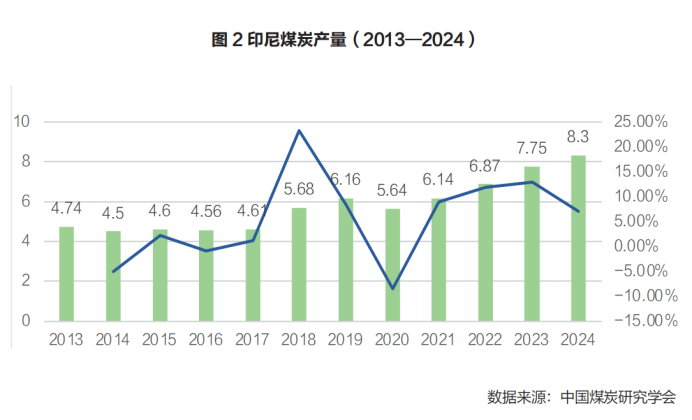 就石油、天然氣和煤炭化石能源稟賦而言,印尼油氣算不上富足,但煤炭資源豐富。印尼曾經為OPEC成員國,但在2003年成為石油凈進口國,并于2008年退出該組織。雖然印尼天然氣儲量排名東盟各國前列,但預計在2030年會變成天然氣凈進口國。印尼煤炭儲量豐富,世界排名第六,儲采比為62。印尼是排名世界前列的煤炭生產和出口大國。根據印尼能源和礦產部相關數據統計,2024年全年印尼煤炭產量已經達到8.3億噸、出口4.3億噸。